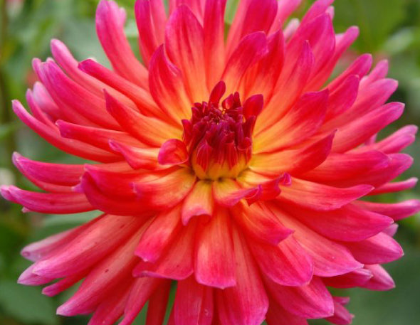 5" fuchsia blending to an orange and yellow toward the center blooms on a 4 1/2' plant. Bright and showy flowers with great stems for cutting.